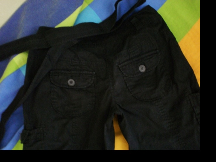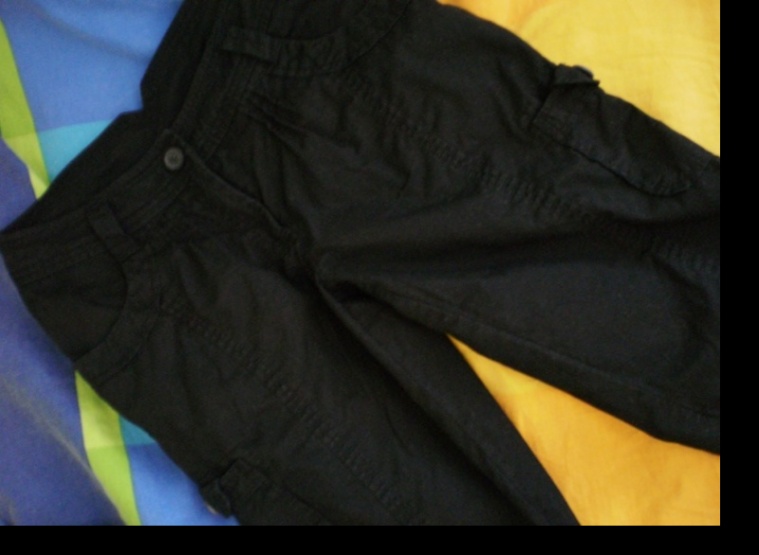Prodám černé 3/4 kalhoty zn. C&A, velikost 36, plátěný materiál, nošené. Pěkný stav. V pase pásek na zavazování, několik kapes, na zadním díle, na bocích menší kapsičky - spíše ozdobné. Nohavice ukončeny širším pásem látky s několika knoflíky. Velice pohodlné, na léto k žabkám i balerínkám ideální.