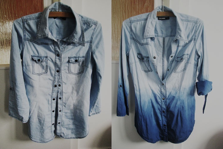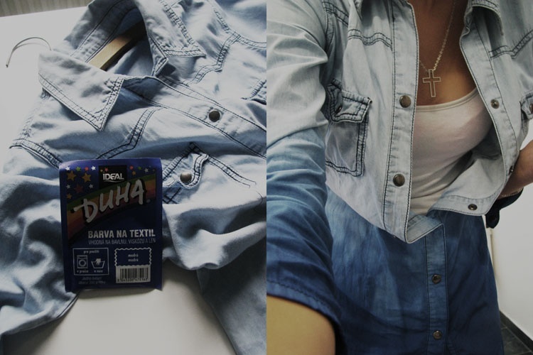Prodám pěknou košily, byla sv. modrá, ale nudila mě, proto jsem její spodek ( Cíp ) obatikovala na tm.modrou.