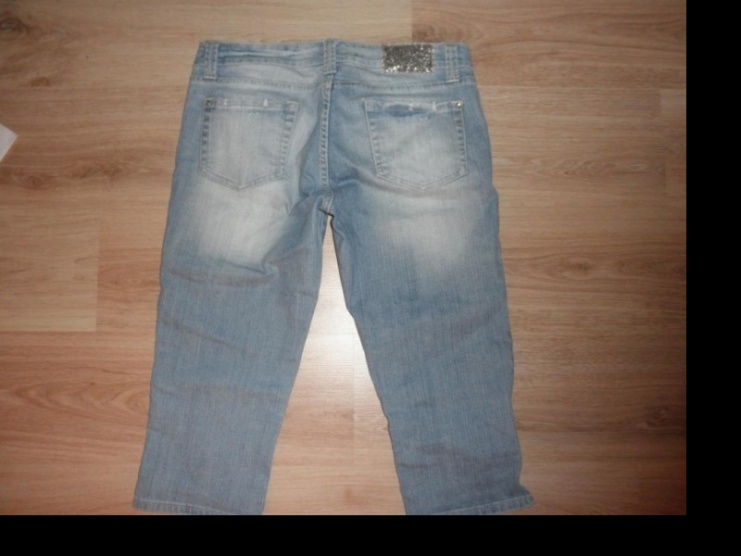 Krásné 3/4 džíny ORSAY vel. 40 světlounce šisované krásné detaily jako cvočky s kamínky nebo jemné trhání na kapsičkách, jsou mírně pružné tak 1-1,5cm se natáhnou a přízbůsobí postavě vzadu na pravé straně pasu je našitý stříbrný obdélník vypadá to moc hezky míry jsou...