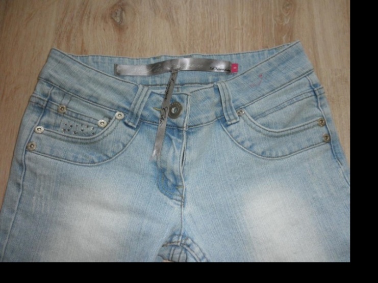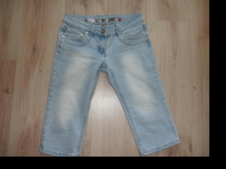 Krásné světle modré 3/4 kalhoty zn. Parisian , pružná džínovina, jsou zdobené ve předu i na zadních kapsách kamínky ani jeden nechybí....jsou opravdu nádherné neprodávala bych kdyby mi nebyly těsné ..je to vel. 36 a míry jsou...