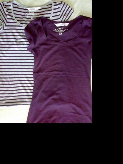 Nová trička, pruhované a celé fialové. Koupené nedávno, jsou mi malá, proto je posílám dál.