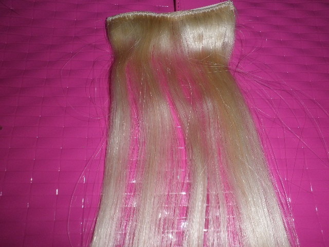 0Dva nové prameny lidských vlasů - připevnění metodou clip in, šířka 7 cm, délka 50 cm, odstín 613.