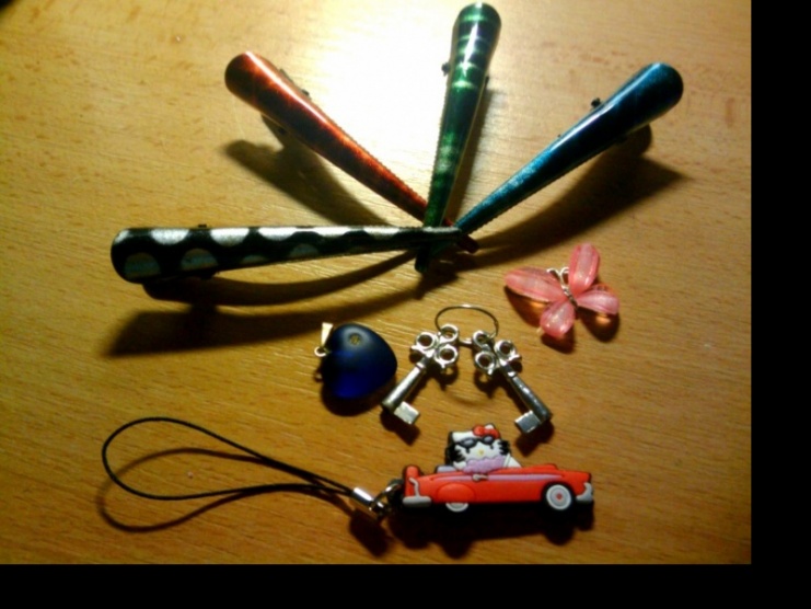 Sada 4 spon ,přívěšku na řetízek srdíčko ,přívěšek 2 klíčky ,přívěšek motýl a přívěšek na telefon Hello kitty – 29Kč + poštovné 20Kč .Při zakoupení více věcí platí se pouze jen jedno poštovné které je ve výši 20 Kč
