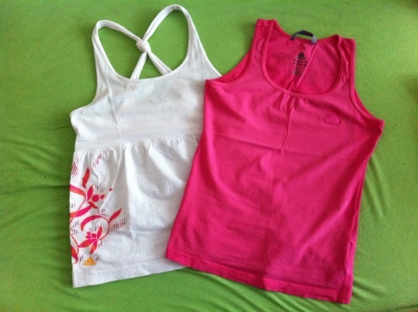 0Nabízím 2 sportovní tílečka vhodná například na cvičení nebo jen tak , málo nošené, dobrý stav, barva je trošku míň zářivá než na obrázku, obě jsou velikost S, příjemný materiál