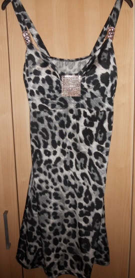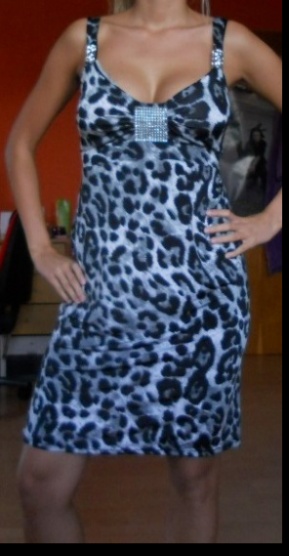 Šaty jsem měla 1x na sobě, jsou z příjemného materiálu- 95% polyester, 8% elasthanne, lehké vycpávky- dělá to hezké prsa a velikost uvedena není, ale míry: pod prsama 32cm, dole 38cm. Jinak pro představu-já mám málá prsa, pas 62cm, boky 88cm.