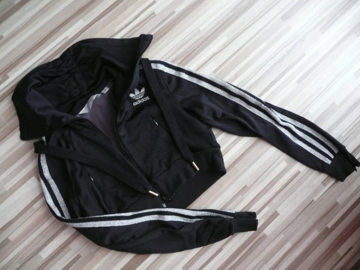 Luxusní Adidas bolerková mikina s velkým límcem,stříbrné pruhy, lesklý materiál..sedí na XS-SProdám nebo vyměním za Adidas FirebirdNabízejte