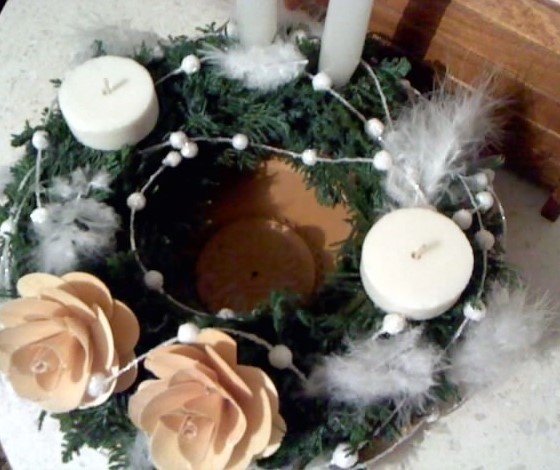 všechny věnečky jsou moc krásné, vkládám ten pro ségru... jen foceno mobilem při umělém světle