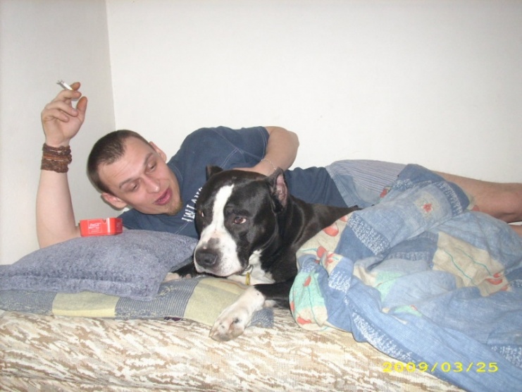 A k tomu je to miláček rodiny a má široké, laskavé srdce. Je to naše třetí dítě, v jistém směru. Ale do postele nesmí, to jsem si nezavedla z hygienických důvodů a taky proto, že nevím, jak bych dospělého staforda z postele vyhodila, kdyby už tam jednou byl