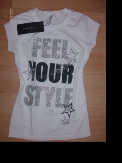 Amisu - tričko bílé s černým a stříbrným motivem