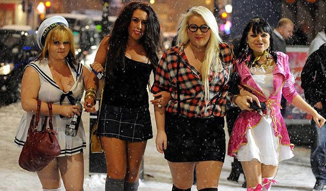 Cituji daffny: Jinak, v pátek nebo v sobotu jít do klubu, v džínách jsme byly s kámoškou uplně mimo. Všechny ANgličanky různývh váhových kategorií měly minišaty těsně po zadek a boty na extrémně vysokých podpadcích. A to opravdu i holky, které vážily asi tak 100 kilo.