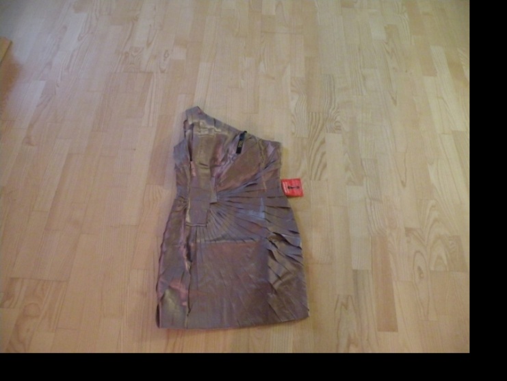 Krásné šaty úžasné barvy. Šaty jsou zajímavě skládané, na jedno rameno. Úplně nové ještě s visačkama. Velikost 38.