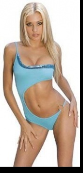 Zdobené stříbrným kroužkem a flitry. Pod flitrovou části pevnější guma, zabraňuje sjíždění, dobře sedí. Kalhotky jsou klasické bikiny. Na obrázku s fotomodelkou je ramínko obráceně než jak je ve skutečnosti, viz. foto na postavě.
