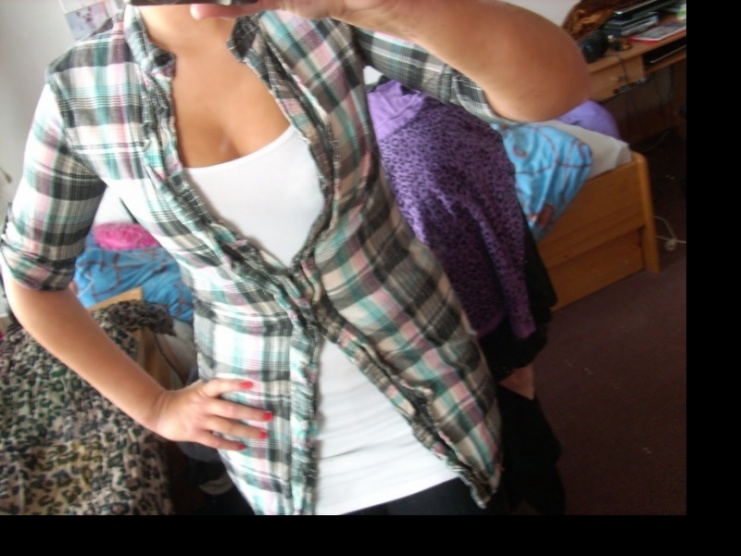 Prodám barevnou, kostičkovanou košili s volánky podél knoflíčků. Rukávy se dají nosit dlohé či krátké, ze spod rukávu je knoflíček.