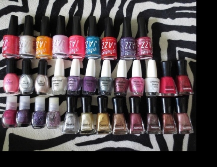 33 kusů laků na nehty různých barev od značek Golden Rose a Jazz, většina z Laků ještě nepoužitá
