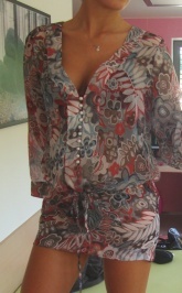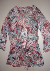 Prodám jednou vzatou tuniku na pláž. Velikost 40, ale má nad zadečkem utahovací část na tkaničku, čili nastavitelná. Myslím, že by odpovídala i 38. Velmi příjemný lehký materiál, zdobená - dvoubarevné perličky (bílostříbrné). Zakoupena na dovče na Sardinii, značka už však psána není, cedulka byla z důlvodu průhlednosti tuniky odstřižena. Cena: 150,- včetně dopravy.