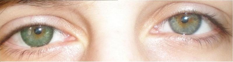 přidávám foto dcery. Má dobarvovací čočky Sea Green. Vlevo je s čočkou, vpravo má svoje.