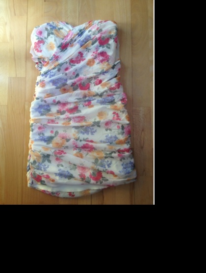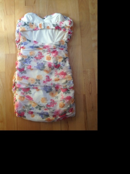 Krásné šaty květinového vzoru. Kupované na anglickém Asosu. Velikost UK 10 odpovídá naší 38 tedy M. Šaty jsou bez ramínek, výztuhy na prsou brání sjíždění šatů. Originální průstřih na zádech. Velikost šatů odpovídá. Šaty jsou jako nové , byly jednou použity.
