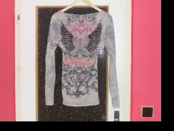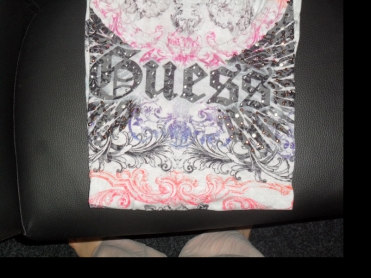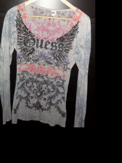 prodám krásne minimálne nošené tričko značky guess.Má zaujímavú farbu 50percen polyester a 50percent bavlna.Stred trička zdobý nápis s malými Stříbrnými kamienkami.Má jemne okrúhly výstřih.Je bez akejkoľvek závady.PC 1300 moja cena je 400kc včetne pošty