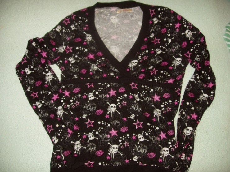 Ahoj holky prodám tričko/mikinu s douhým rukávem s barevnými potisky..měla sem si koupit bílé, mám černé vlasy, přijdu si jak vdova