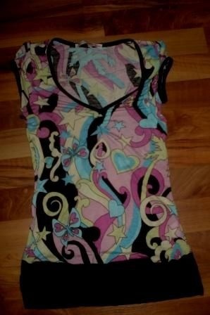 Krásné nepřehlédnutelné tričko. Velikost XS, ale může nosit i S a možná i M, je hodně natahovací !