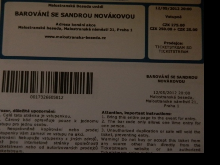 Prodám pouze oba lístky najednou, osobní předání v Praze