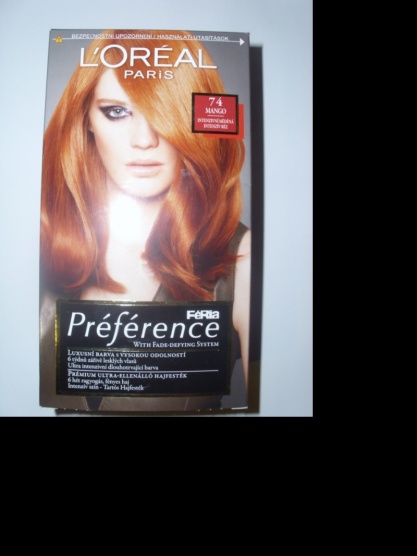 0Prodám novou, ještě nerozbalenou, barvu na vlasy zn. Loreal Preference 74 Mango/Intenzivní měděná.