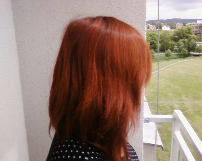 hennecolor jsem smíchala s citronem, medem, paprikou, olejem a zalila jahodovým čajem, nechala jsem to asi hoďku a půl odstát v teplý lázni a výsledek: