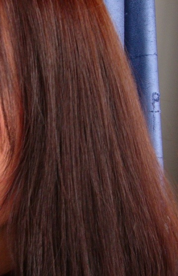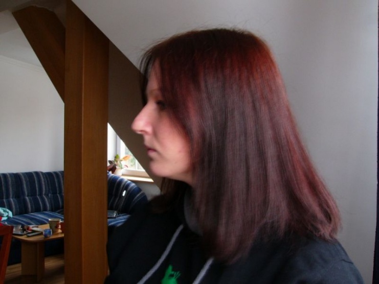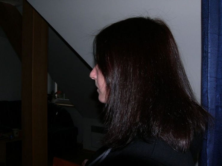 Tak hotovo... měla jsem to tam tak 50min a chytlo mi to dobře, barva je hnědá a skoro vůbec nehází odlesky do červena, jen minimálně... Přidala jsem tam to kakao a vlasy mi nádherně voní... Jen malý detail- když jsem to smývala, tak jsem měla ty vlasy jako cukrovou vatu- takový slepený, hrubý