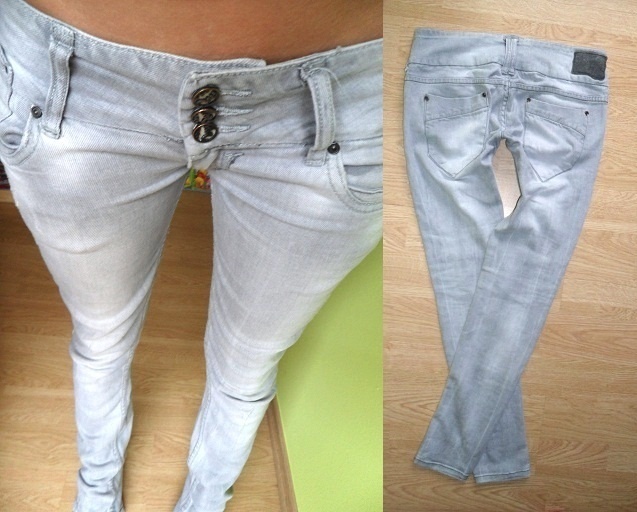 Prodám tyto žádané slimky ve vel 34 barva je šedá mají nízko položené kapsy pas 37cm boky 39cm délka 101 cm jsou ve skvělém stavu minimálně nošené