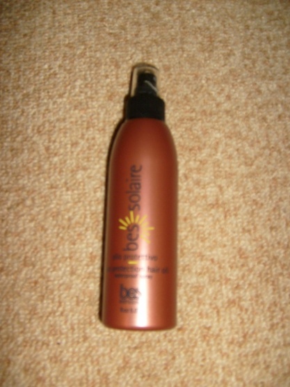 Ochranný olej na vlasy před sluněním. Ochranný olej ve spreji pro sluncem namáhané vlasy, sprej s UVA a UVB filtrem poskytuje rychlou a efektivní péči vlasům vystaveným působení slunce a zlepšuje jejich rozčesatelnost, zároveň jsou vlasy chráněny před negativními vlivy slunce, moře a chlorované vody. Bohatá formule účinných látek intenzivně chrání vlasy před škodlivými slunečními paprsky vlasy jsou šetrně ošetřovány, dostává se jim zářivého lesku a stávají se skutečně krásnými a zdravými