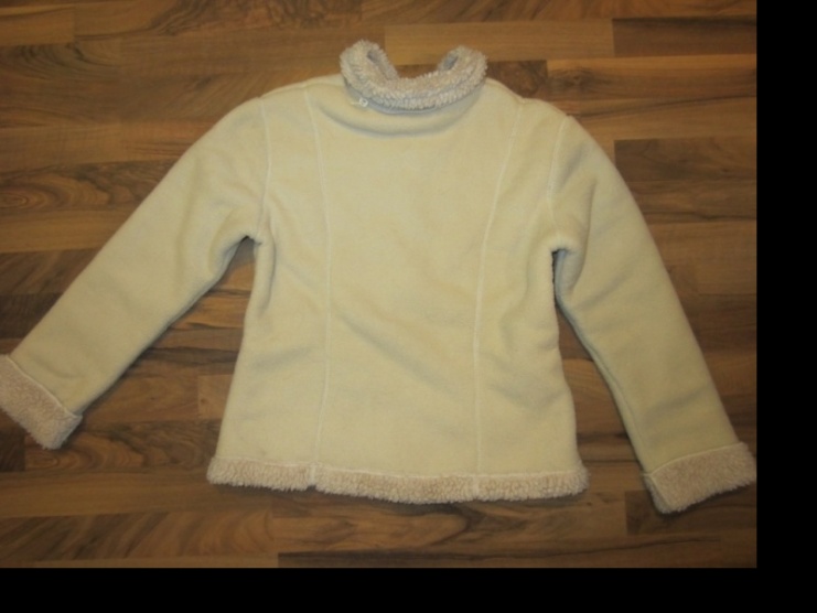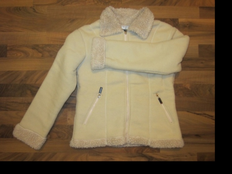 Bunda béžová, typu mikiny na zip, kapsy na zip, teplá. Velikost S či pro dítě školního věku.