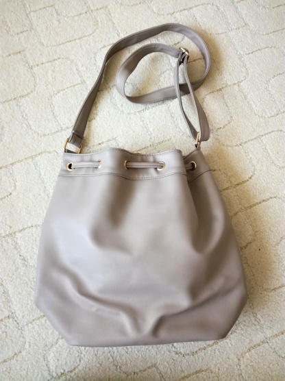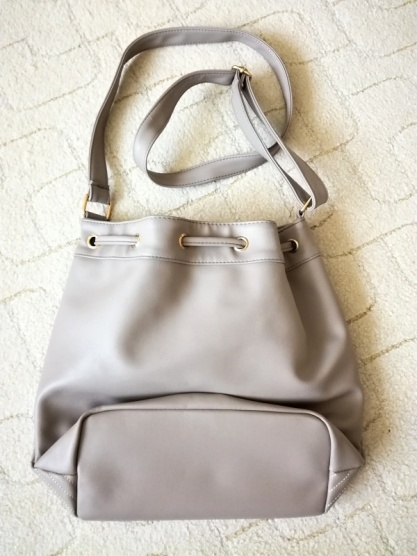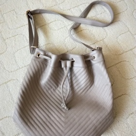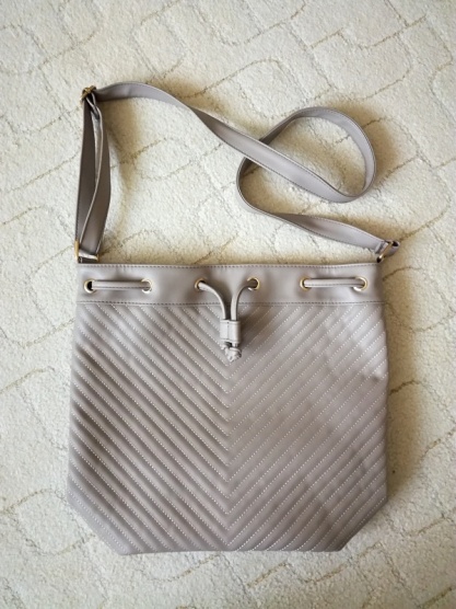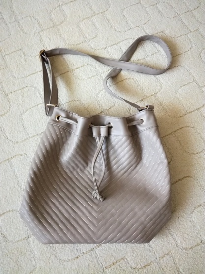 krásná, jako nová, bez vad, typ vak na zdrhování, přední část bohatě prošitá, uvnitř podšívka, dvě otevřené kapsičky a kapsa na zip, kovové součásti ve zlaté barvě, nastavitelný popruh, výška 32 cm, šířka 36 cm, hloubka 13 cm, Zásilkovnou za 79 Kč
