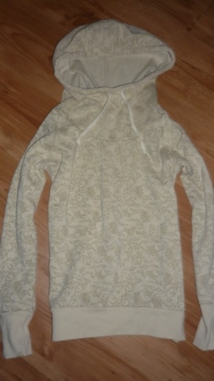 Mikina nošená ale super stav . Barva je béžová až do bíla . Na mikině jsou všude malé rybičky . Mikiny značku nevím jelikož už jsem odstřihla lístek tudíž zn. Neznámá . Mikina má úplet až k hlavě a kapuci na stáhnutí . Velikost M-L . Moje cena je 99 kč
