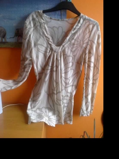 Tunika tělové barvy s velkými květy. Lehký material,vhodný na léto,volný střih.Výstřih do véčka.