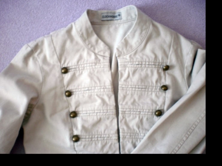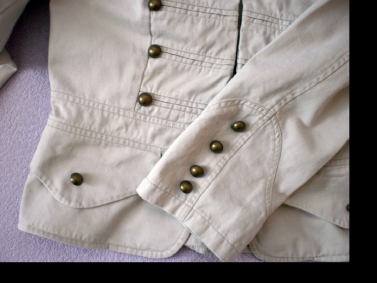 Prodám na aukru zakoupené béžové, světle krémové sáčko s dvouřadými knoflíčky v army/military stylu.