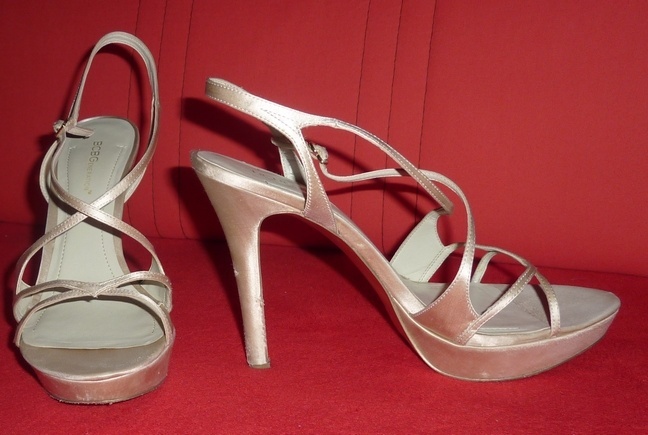 Prodám béžové saténové boty na jehlovém podpatku s platformou. Velikost uvedená 39,5 ale sedí spíš na 40