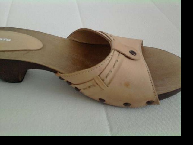 Prodám béžové kožené dřeváky od Bati, koupila jsem je na Mimibazaru, bohužel jsou mi úzké, neobuji je, takže vhodné spíše na úzkou nohu. Podle původní majitelky jsou nenošené, podrážka není vůbec ochozená. Na levé botě malý flíček - otlačeninka, prý už od koupě, nafoceno. Délka stélky 24,5 cm. Cena 260,- Kč včetně poštovného.