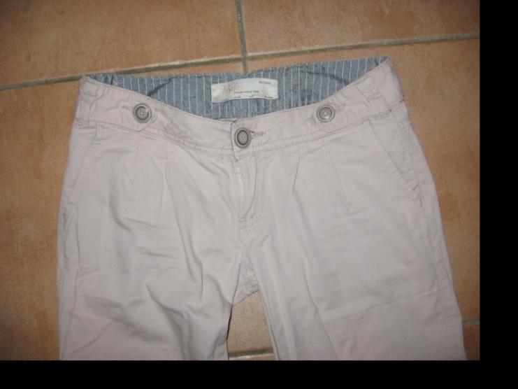 Prodám párkrát vzaté béžové plátěné kalhoty z BSK, ve velikosti 32.