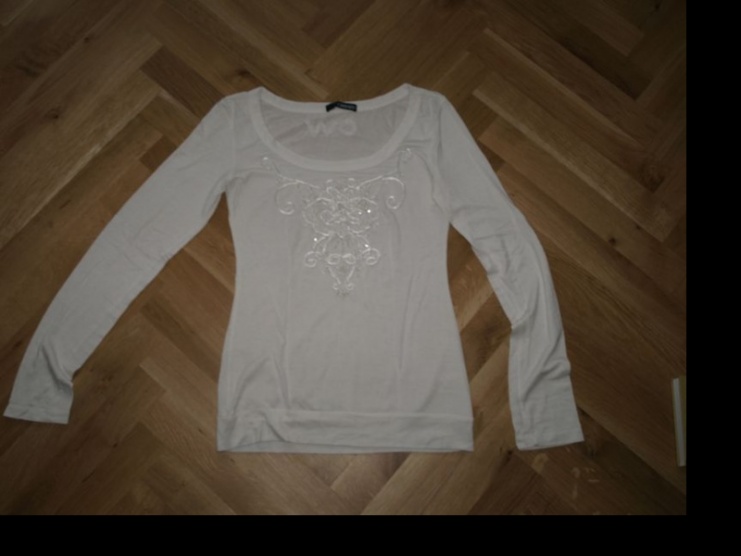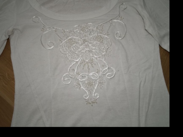 Luxusní tričko zn. Own Way. Krásná výšivka s kamínky, kulatý výstřih. Velikost M a odpovídá. Měla jsem ho na sobě asi 5 krát. Pc byla 1250 Kč. Na tričku jsou na dvou místech malé začínající žmolečky, ale není to skoro ani vidět, raději na to ale upozorňuji.