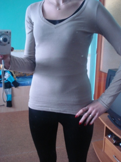 0Prodám parkrát vzaté béžové triko s dlouhým rukávem a véčkovým výstřihem.