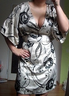 Nádherné, saténové šaty s hlubokým dekoltem. Pod prsy na svázání. Nošené minimálně, super stav, jako nové.Hodí se i k černým kalhotům jako delší tunika. Jsou volnější, široké rukávy, hodí se na velikost M/L.