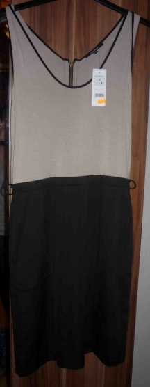 Šaty jsou naprosto nové, ještě s visačkou. Vrchní díl je elastický, béžové barvy s černými lemy. Sukně je z nějakého černého plátna. K šatům přidávám i originální pásek, který byl součástí. Na zádech jsou šaty zdobené zipem, který je oživí. Jsou vhodné do společnosti, do práce nebo i na léto. PC 499Kč, prodávám za 350Kč