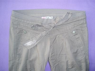 Super plátěné kalhoty značky Bershka. Jsou velmi málo nošené. Jsou mi bohužel větší, proto posílám dál. Na pravé kapse je nefunkční druk, který je tam však jen na ozdobu, takže to ničemu nevadí (již jsem tak koupila). Dole do gumky.