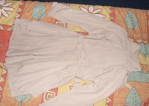 je užasny vzadu mašla dá sa dat dole strih ktorý robí štihly pás je novy i s vysačkou, satenová podšívka farbu trošku presvetlil blesk, kabatik je dokrčený od prepravy