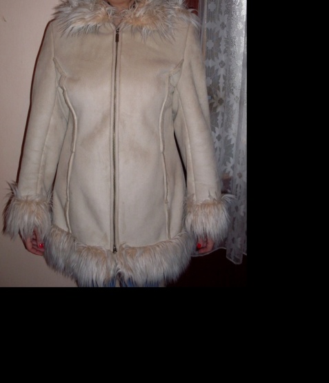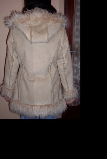 Prodávám mamince málo nošený béžový kožíšek s chlupem kolem kapucy, rukávů a na spodním lemu.
