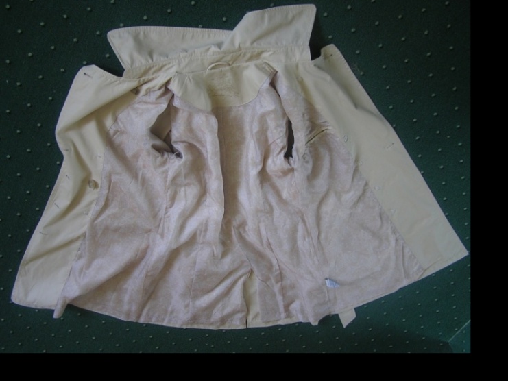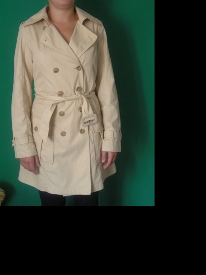 Kvalitně propracovaný béžový kabát s dvouřadým zapínáním na knoflíky, celovypodšívkovaný. Precizní lichotivý střih a propracované detaily. Vhodný do jarního a podzimního počasí. Kabát je ve skvělém stavu, za což ručím. Velikost bude Mku i Lku. Rozměry : délka : 89 cm, šířka v ramenou 41 cm, délka rukávu 62 cm. Šířkové míry měřené při zapnutém kabátu : šířka přes prsa 2x 47, pas 2x 44. V pase na stažení páskem,vzadu 1 rozparek.