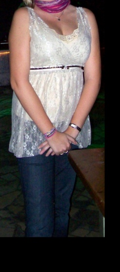 1Krásný společenský topík, vícevrstvý. Je delší, přes boky, vypadá moc krásně na každé postavě. Mně je bohužel malý, třeba někomu udělá radost