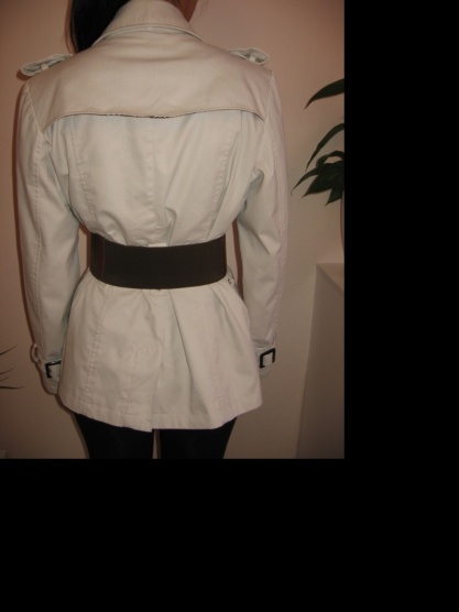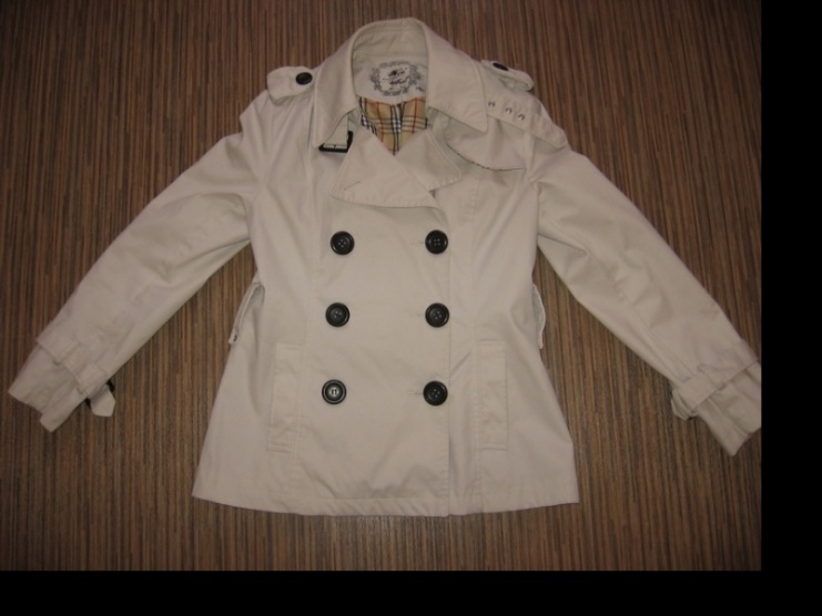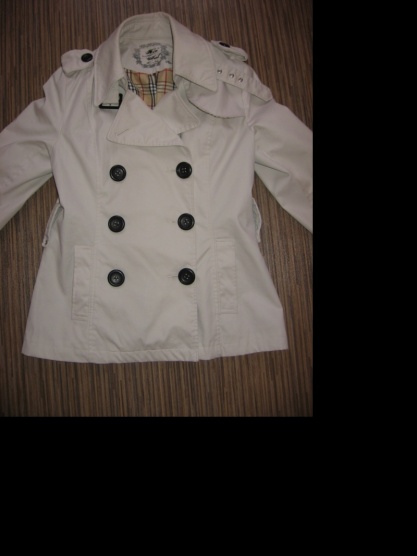 Prodávám mamince minimálně nošený kratší béžový trench s dvěma řadami knoflíků.
