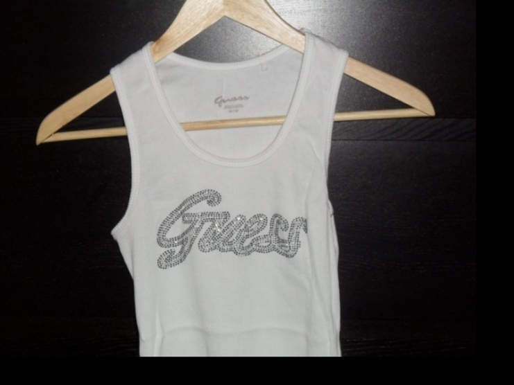 Predám nádherné biele tielko,z jemným výstrihom.V strede tielka je nápis Guees zdobeným malými jemnými ozdobnymi kamienkami.Je z bavlny.Pár krát nosené bez vady.Cena tielka 400 kč včetne pošty