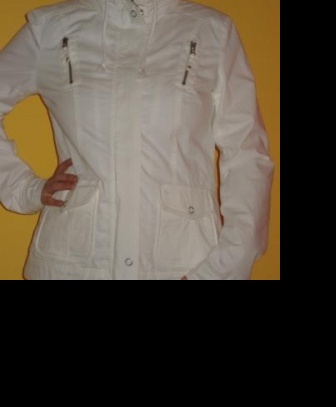 Nová, nenošená bílá delší bunda z Tchiba, zakoupená loni přes e-shop. Má schovanou kapucu v límci a bunda je na zip.